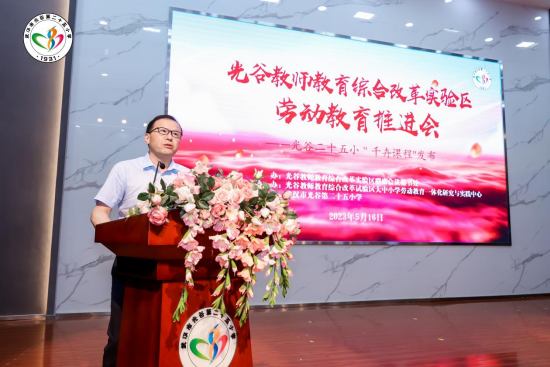 本网讯(通讯员 马勇)5月16日上午,光谷教师教育综合改革实验区劳动教育推进会暨光谷二十五小“千卉课程”发布活动在光谷二十五小举行,BEAT365官网党委常委、副校长夏力,东湖高新区教育局副局长陈红、东湖新技术开发区教师发展研究院院长王开桥出席活动。