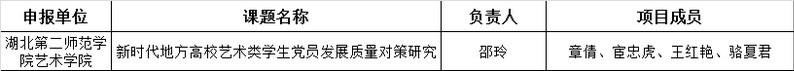 本网讯(通讯员 王红艳)艺术学院党委副书记邵玲带领课题组申报的《新时代地方高校艺术类学生党员发展质量对策研究》入选2023年全国党建课题立项。