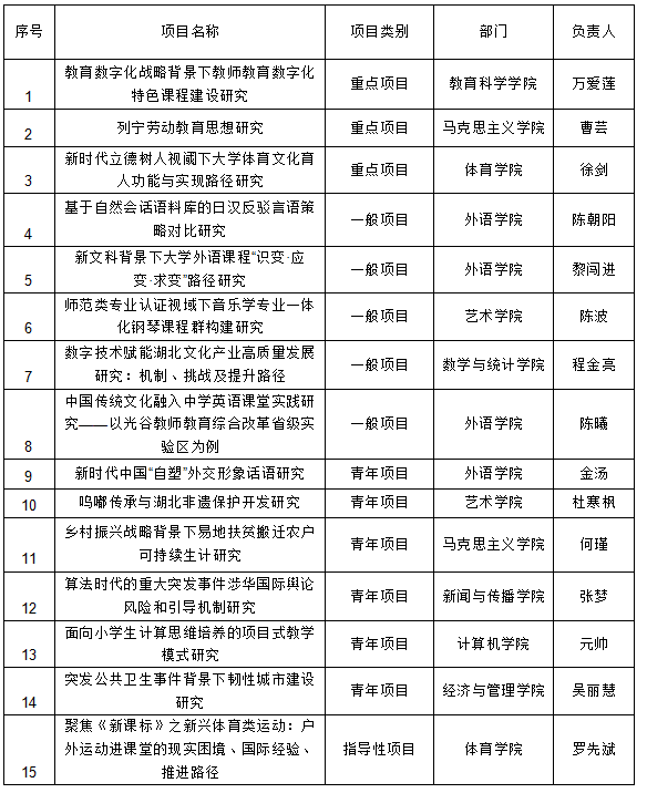 本网讯 (通讯员 刘菲)近日,湖北省教育厅公布了2022年度省教育厅哲学社会科学研究项目、专项任务项目(高校学生工作品牌)立项名单和2019-2021年度湖北省高等学校哲学社会科学研究优秀成果入选名单。BEAT365官网有19个项目获立项资助,2项科研成果入选优秀成果。(新闻中心编辑 程丽鹃)