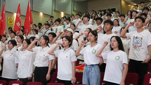 经济与管理学院党委副书记李京、马克思主义学院红船行志愿服务队队长李杨柳分别发言,学校暑期“三下乡”社会实践团队进行集体宣誓。