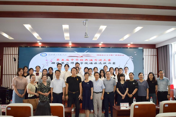 本次比赛邀请了国家级普通话水平测试员、教育部中华经典诵读工程专家库成员、湖北省朗诵艺术家协会理事雷峻,国家级普通话水平测试员、国家赴港澳普通话测试专家、湖北省朗诵艺术家协会理事兰霞,著名艺术家、南开大学文学院客座教授、北京大学EMBA导师王麒诚,广州优谷信息技术有限公司优谷朗读武汉负责人胡云露,第四届中华诵写讲大赛优秀组织个人奖获得者、文学院副院长李汉桥等五位专家担任比赛评委。