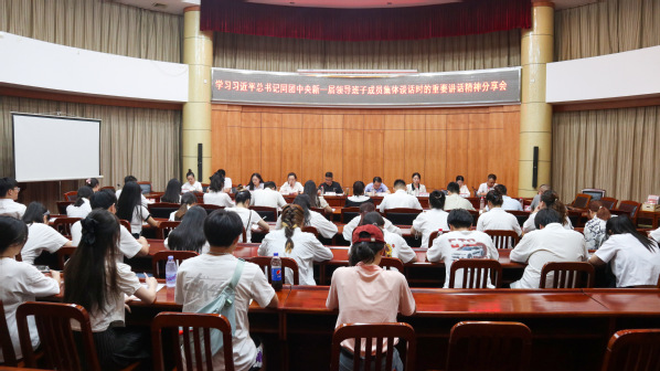 校团委副书记张静领学了中国共产主义青年团第十九次全国代表大会精神。16名师生团干代表分享交流了学习体会。