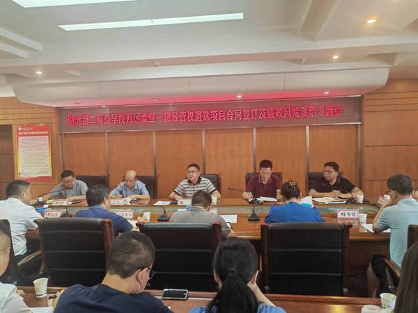 本网讯(通讯员 方韬)7月12日下午,学校在四号会议室召开西区食堂一楼经营权遴选项目合同签订及廉政风险谈话专题会,副校长陈勇出席会议,后勤保障部党总支书记刘晖主持。