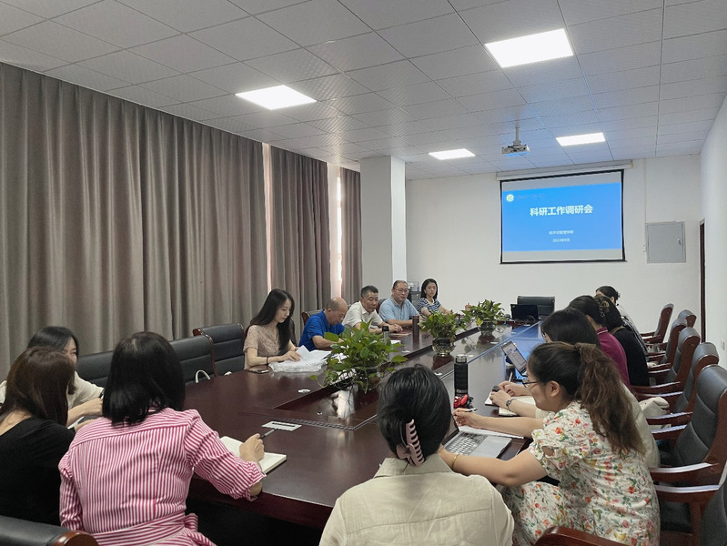 陈池波院长从立足四大发展理念、落实四大建设任务、推进四名培育工程概述了学院基本情况,从平台建设、团队建设、项目申报、论文发表、专著出版等方面介绍了学院科研工作。副院长常静通报了学院近来来取得的科研成果,希望学校科研处为学院搭建更多平台,提供更多支持,共同推动学院科研工作高质量发展。与会老师充分交流了科研工作中的成绩与体会,遇到的问题与困惑。科研处贺青副处长鼓励老师们要树立申报信心,组建学科团队,凝炼研究方向,夯实研究基础。