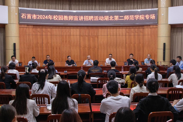活动中,石首市第一中学校长张国勇介绍了石首市人文地理和此次教师招聘基本情况,讲解了招聘流程及招聘单位用人需求。