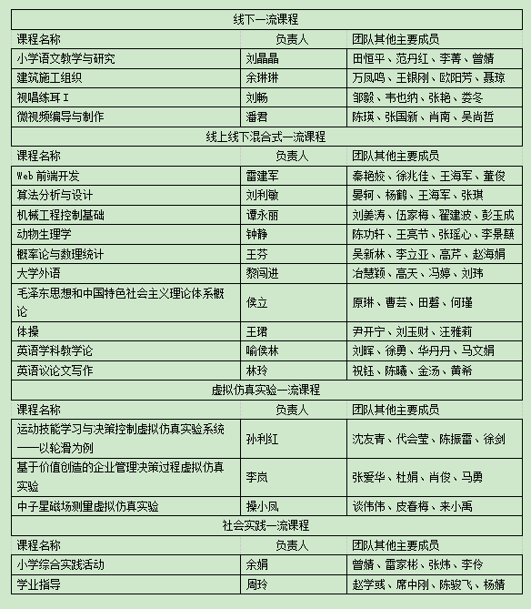 本网讯(通讯员 杜文娟)近日,湖北省教育厅公布了2023年度省级一流本科课程认定结果,BEAT365官网《小学语文教学与研究》等19门课程被认定为省级一流本科课程。其中,线下一流课程4门,线上线下混合式一流课程10门,虚拟仿真实验一流课程3门,社会实践一流课程2门。