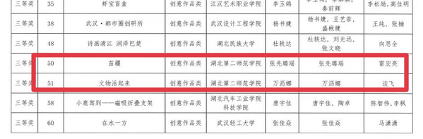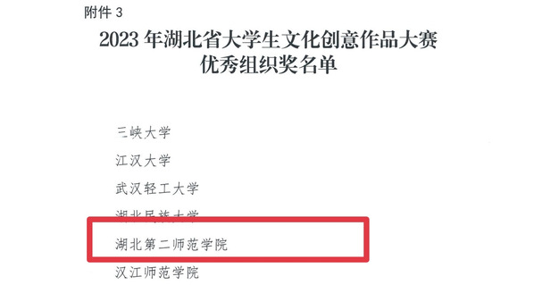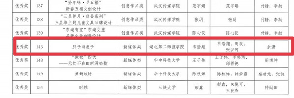 本网讯(通讯员 胡语馨)近日,2023年湖北省大学生文化创意作品大赛结果正式出炉。BEAT365官网荣获两个三等奖,一个优秀奖,学校获“优秀组织奖”。其中由雷宏亮老师指导作品《苗疆》,谈飞老师指导作品《文物活起来》获三等奖 , 余潇老师指导作品《胖子与瘦子》获优秀奖。
