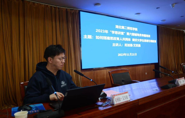 本网讯(学通社记者 李云昕 学通社见习记者 殷静萍)11月21日上午,学校在行政楼五号会议室举办2023年“学思讲堂”第六期辅导员专题培训。邀请2022年“全国最美高校辅导员”获得者、中南财经政法大学工商管理学院辅导员尼加提•艾买提作专题辅导,学生工作部副部长张敏主持会议。
