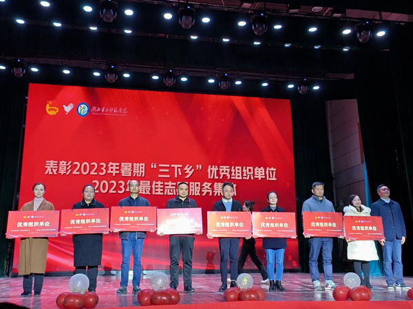 现场,青年师生代表分享了与西部计划的故事、“三下乡”暑期社会实践故事,传唱《中国青年志愿者之歌》、表演实践育人故事情景剧《一起守护星星的孩子》、歌舞《一起向未来》以及非遗文化传承《千古风华》等,传递志愿精神,展现青年师生风采,唱响新时代青春之歌。会上,为获得2023年暑期大学生“三下乡”社会实践先进集体和先进个人和2023年志愿服务工作先进集体和先进个人颁奖。