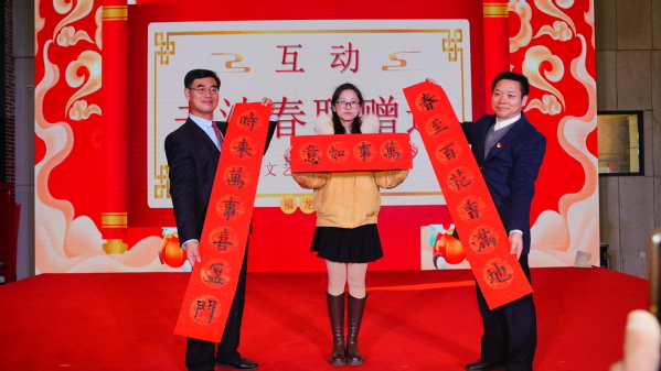 马克思主义学院师生表演了历史情景剧《我们的青春美好时代》。演出中,师生以昂扬的姿态展示了感党恩、听党话、跟党走的精神内涵,为父老乡亲们献上了一场视听盛宴。活动中间,学生现场写春联送春联,将满满的祝福送到每一位居民手中,传递浓浓年味。