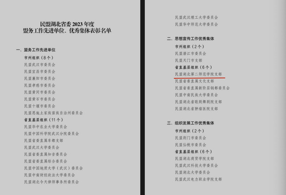 据悉,此次民盟湖北省委在全省范围共表彰了6个省直基层组织“思想宣传工作优秀集体”荣誉称号。(新闻中心编辑 程丽鹃)