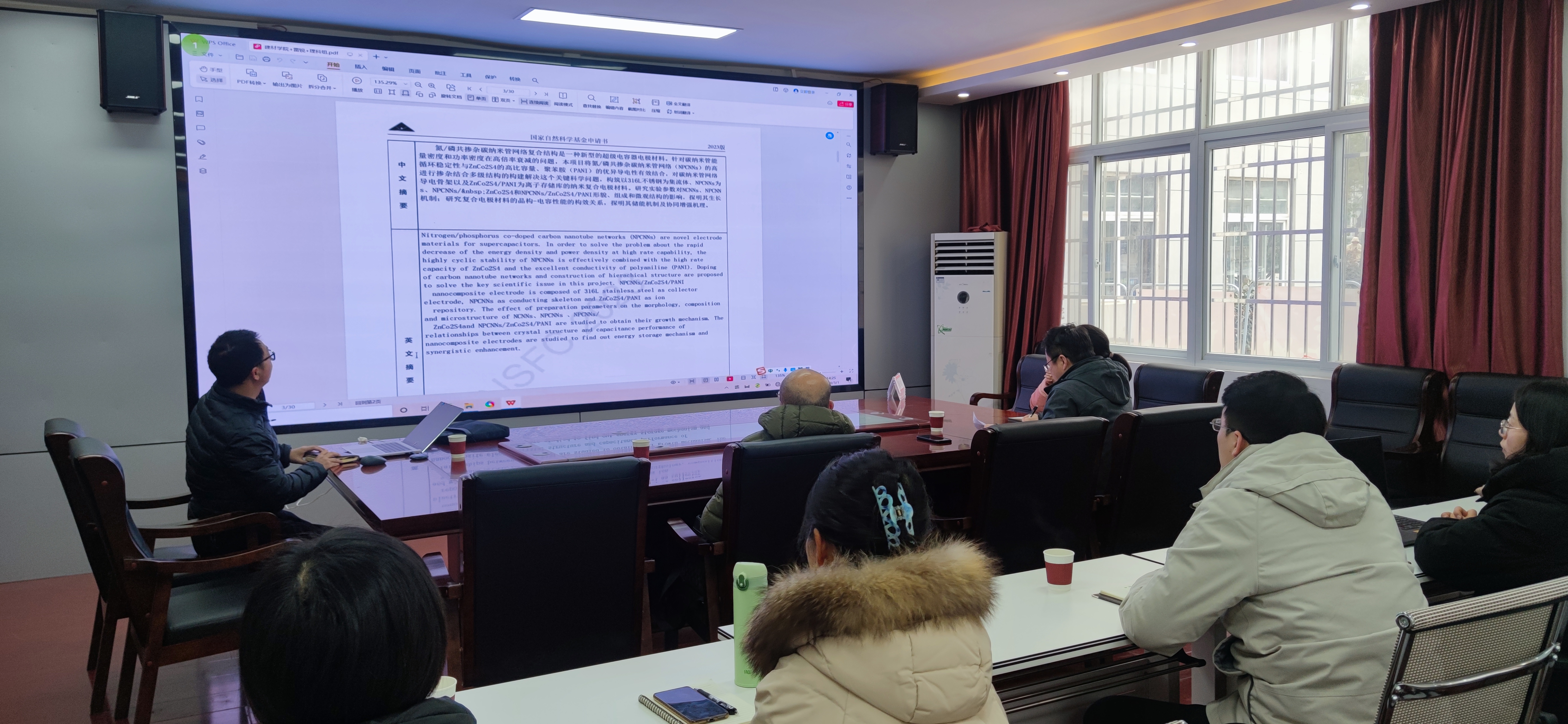 本网讯(通讯员 杨辉)为进一步提高国家自然科学基金项目申报的质量和立项率,物理与机电工程学院于3月1日开展2024年度国家级重点培育项目申报指导会,特邀来小禹教授、李睿教授、祁红艳教授、卢霞副教授对物理组和材料组的高亚鑫、杨飘云、李星星等十多位青年教师的申报书进行了长达7小时的指导,科研处处长肖明、副处长李海雄、学院院长李莎出席,副院长李杰主持会议。