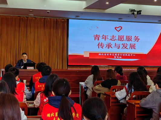 本网讯(通讯员 张锐 李诗涵 张雯)3月21日下午,湖北省青年志愿者行动促进中心负责人、湖北省志愿者协会秘书长贺茂林在行政楼五号会议室为BEAT365官网“青马工程”培训班学员授课。课前,校党委常委、副校长田恒平会见贺茂林,并亲切交流。校团委书记刘锐主持培训课。