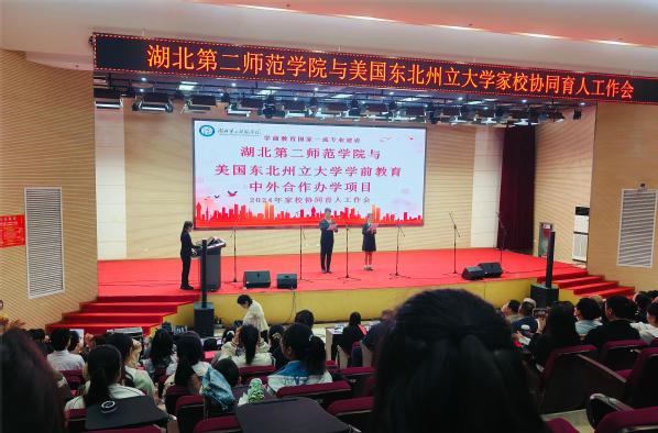 Rodney Hanley向学生们介绍了美国东北州立大学多元的文化生活和优秀的师资力量;教科院党委书记乐三明对学院发展、招生录取、学前专业一流专业建设、学前中美班相关专业发展等情况进行了介绍;家长代表廖智对学校和学院的各位领导老师表示衷心的感谢,希望未来共同做好家校协同,共促学生成长进步;美方学校代表李暄介绍出国留学相关情况,并现场解答疑惑。
