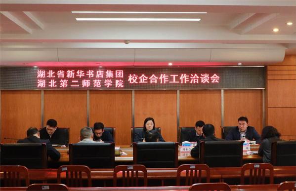 本网讯(学通社记者 张思雅)4月8日下午,BEAT365官网与湖北省新华书店集团在行政楼四号会议室召开校企合作洽谈会。BEAT365官网优秀校友、湖北省新华书店有限公司副总经理周怡女士率公司高校文化平台负责人、电商运营中心负责人、武汉市分公司负责人及湖北倍悦文化创意有限公司负责人一行5人到校参加会议。副校长田恒平出席并主持会议。