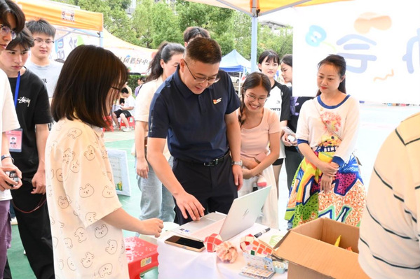 每个社团在各自的展位设置特色活动。音乐社的旋律与现场的欢声笑语相互交织,滑板社的成员以各项特技赢得在场同学阵阵掌声,街舞社的成员在与音乐节奏的融合中吸引了众多观众,将现场气氛推向高潮。