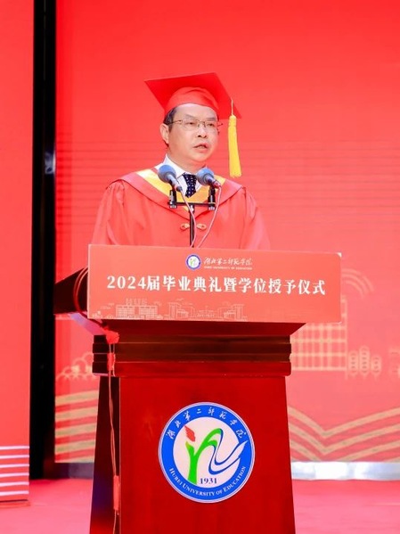 校长郑军以《以奋斗之我 勇担时代之责》为题,为全体毕业生上好大学“最后一课”。他回顾了毕业生们四年来的成长与蜕变,肯定了他们坚韧和执着、踔厉奋发的信心。他勉励毕业生,要心怀家国、志存高远,把个人小我融入祖国大我之中,在实现中华民族伟大复兴的接力跑中坚持不懈,真正成为奋进新时代的复兴栋梁、强国先锋;要在将来的人生历程中继续涵养“自找苦吃”的精神气质,在学习实践过程中增长智慧才干;要把扎根基层、服务社会作为一种坚定的信念,不断锤炼品质、建功立业。最后他希望全校毕业生心系“国家事”、肩扛“国家责”,在祖国最需要、社会最需要、人民最需要的地方生根发芽,以服务社会为己责,以成就事业为己任。