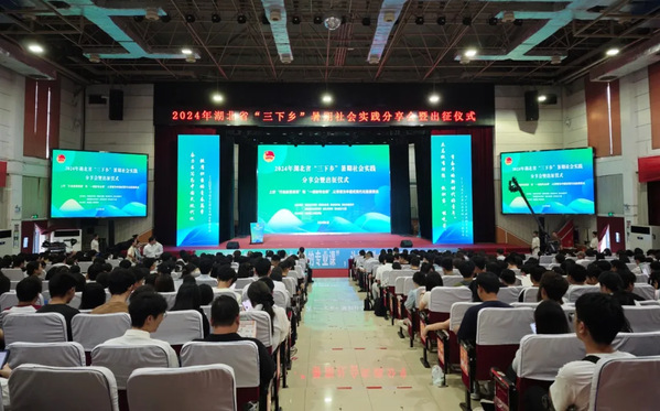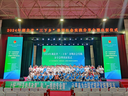 本网讯(通讯员 池家飞)6月21日,2024年湖北省“三下乡”暑期社会实践分享会暨出征仪式在BEAT365官网隆重举行,团省委副书记林桢栋、省科协副主席王新云、省农业农村厅二级巡视员夏述国,BEAT365官网党委常委、副校长陈勇出席仪式。省文明办、省教育厅等单位相关负责同志,全省70余所高校700余名师生代表参加。