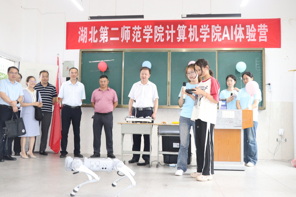 本网讯(通讯员 邓重阳)7月16日,校党委副书记胡兴率校团委、计算机学院负责人前往孝昌县参加计算机学院“云尘筑梦”志愿服务队AI体验营开班仪式,看望慰问在孝昌险峰初中参加暑期“三下乡”社会实践活动的师生。孝昌县教育局、陡山乡相关负责人、驻村工作队成员参加活动。
