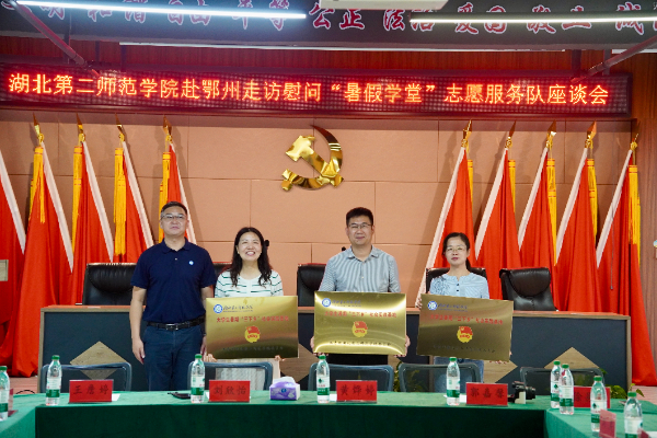 本网讯(通讯员 肖沫晔 王一 方可立)7月17日,副校长陈勇率队赴鄂州慰问正在开展暑期“三下乡”社会实践工作的志愿者。鄂州团市委副书记王远顺、市少先队总辅导员周进等陪同走访。