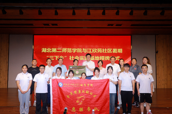 随后,双方在社区多功能会议室召开“三下乡”社会实践基地授牌仪式。会上,崔丹对本次实践活动及成员整体表现给予了高度评价,并介绍了汉阳区青年工作的基本情况。实践团队学生代表作汇报发言。校社双方签订了《大学生暑期“三下乡”社会实践活动基地共建协议》,学校为汉阳区江欣苑社区社会实践基地授牌。