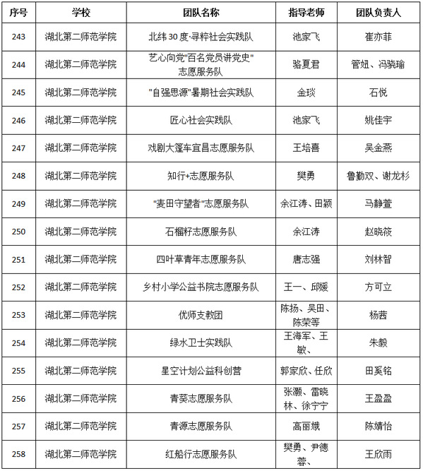 2024年湖北省暑期三下乡社会实践立项重点团队名单
