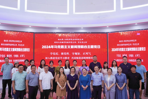 本网讯(通讯员 彭俊燃 葛怡嘉)6月20日下午 ,党委宣传部党支部、新闻与传播学院教师党支部和学生党支部联合举行“深入推进党纪学习教育,共同缔造清朗网络环境”2024年马克思主义新闻观联合主题党日。校党委常委、副校长陈勇到会指导,机关党委主要负责人王青到会督导。