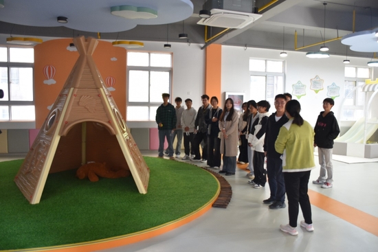 在工作人员带领下,师生一行观看了社区宣传片,参观了“益实践”公益托管基地、“轻松乐”周末五育课堂等社区特色项目。社区负责人王聪介绍,仁尚里一个新型商业社区,人口以‘光谷新移民’家庭为主,具有来源广、流动大、年轻化、增长快等特点。近年来,社区运用共同缔造理念,持续引入服务资源,为居民营造轻松、便捷的生活场景,打造舒适的社区生活空间。
