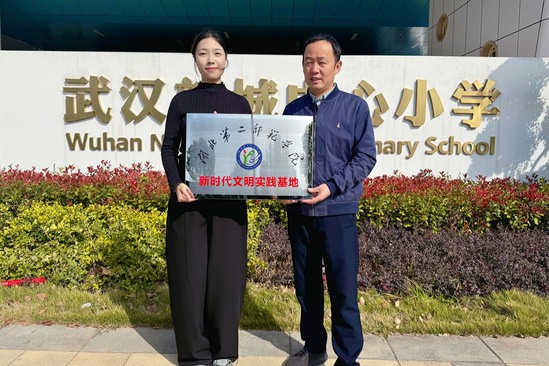随后,双方举行了“新时代文明实践基地”授牌仪式。双方一致认同,湖北二师体育学院拥有专业的师资、先进的训练理念和丰富的体育资源,武汉新城中心小学有着充满朝气的学生群体和对优质体育教育的渴望,两校携手共同推进新时代文明实践工作,将实现优势互补,进一步深化光谷区域大中小体育教育的融合发展。