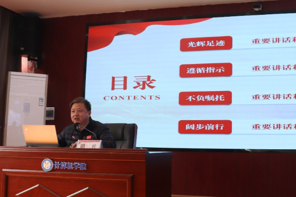胡兴梳理总结了习近平总书记近年来六次考察湖北的重要讲话和指示批示,着重介绍了习近平总书记四次走进光谷、考察企业和社区的情况,深入剖析了习近平总书记关于湖北工作的重要讲话和指示批示精神的核心要义,嘱咐全体师生要深刻领会其精神实质,将学习成果转化为推动学院发展的强大动力。