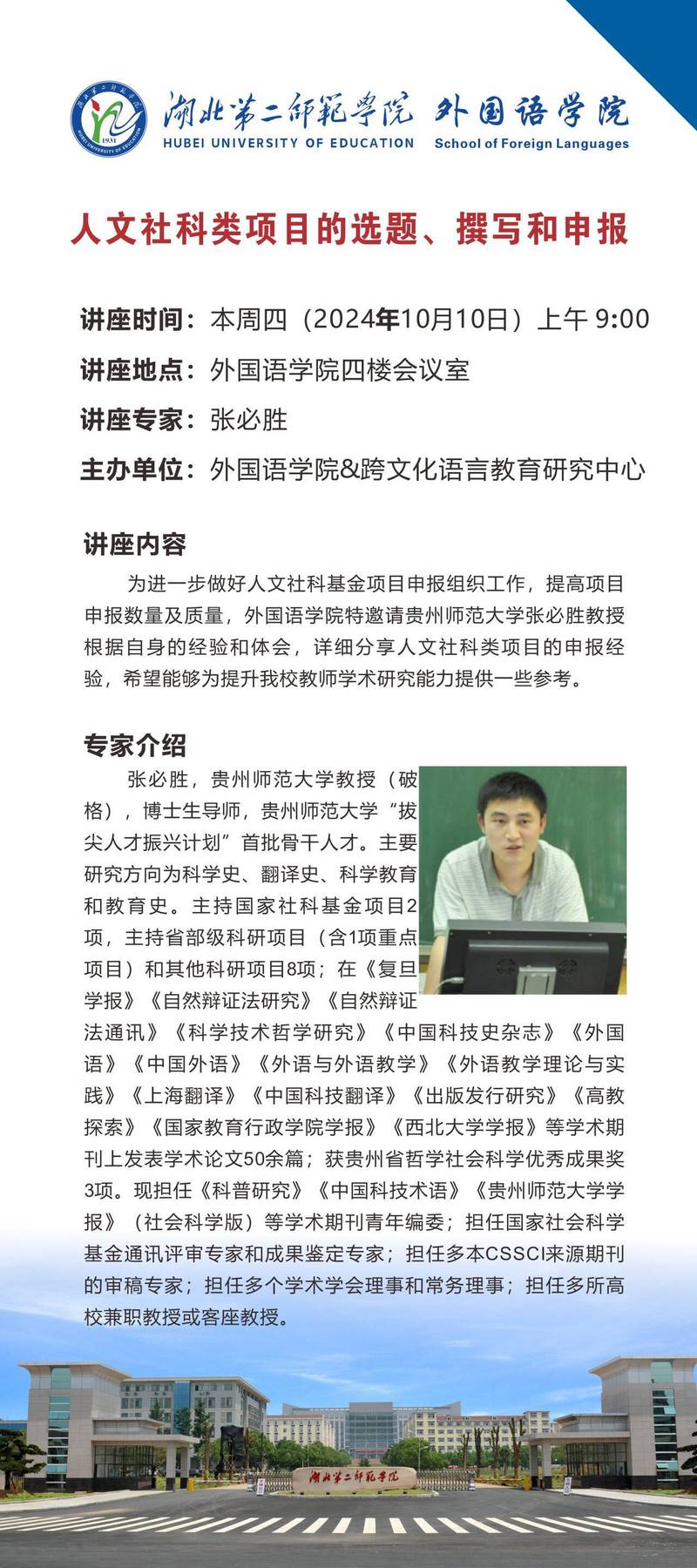 【金秋学术活动月】外国语学院 人文社科类项目的选题、撰写和申报