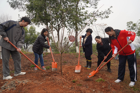 体育学院2024级体教3班的徐梦瑶说:“亲手和师长们种下树苗,很有感触。这不仅是劳动付出,更是心灵洗礼。我会和树木一起成长,让绿色与希望在校园绽放光彩。”