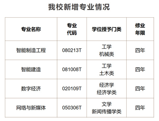 学校长期坚持内涵式发展,持续优化专业结构,提升专业建设水平。此次新增专业是学校主动适应国家和区域经济社会发展、知识创新、科技进步、产业升级需求,对接湖北“51020”现代产业集群的重要举措。学校将以此为契机,持续加强专业建设,优化人才培养方案,加大教学资源投入,提升教学质量,培养更多适应经济社会发展的高素质应用型人才。(新闻中心编辑 夏锐)