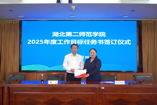 本网讯(通讯员 王凌宇)4月30日上午,学校在行政楼五号会议室举行2025年度工作目标任务书签订仪式。全体在校校领导出席,党委副书记胡兴主持会议。