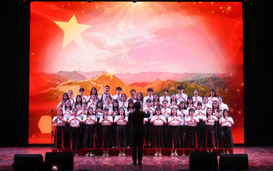 在《光荣啊,中国共青团》的嘹亮合唱中,比赛拉开帷幕。光谷教育学院以《爱永在》展现专业美声水准,声情交融震撼全场;马克思主义学院以师生同台形式倾情演绎《紫荆花盛开》,激昂旋律中洋溢着青春力量与家国情怀;教育科学学院将钢琴独奏与独舞融入《灯火里的中国》,为传统合唱增添灵动之美……一首首时代金曲被赋予青春注解,唱响了新时代青年的信仰与担当。