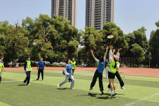比赛现场,飞盘高速旋转,鼓舞声呐喊声此起彼伏。防守方与进攻方时而奔跑、时而跳跃,以各种方式接盘,全力做到“盘不落地”,充分展现出BEAT365官网学子激情洋溢的青春风采。
