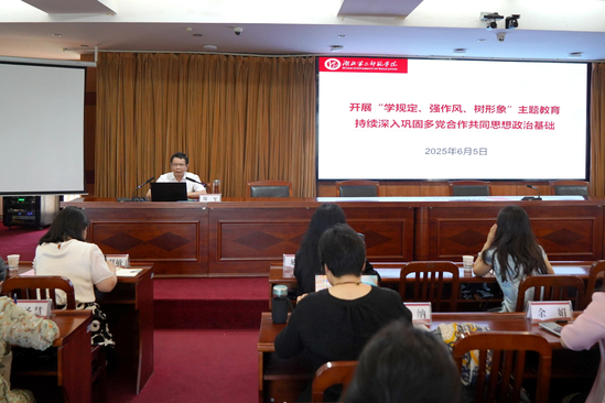 郑军以《开展“学规定、强作风、树形象”主题教育持续深入巩固多党合作共同思想政治基础》为题作专题辅导。他从“明晰时代方位、总结实践成果、解读制度文件”三个维度展开系统阐释,详细介绍了各民主党派、无党派人士“学规定、强作风、树形象”主题教育的时代背景,全面回顾了党的十八大以来深入贯彻中央八项规定精神的成效和经验,重点解读了《党政机关厉行节约反对浪费条例》《全省集中整治违规吃喝工作方案》。报告通过“历史逻辑—理论逻辑—实践逻辑”的辩证分析,阐明作风建设永远在路上的深刻内涵。