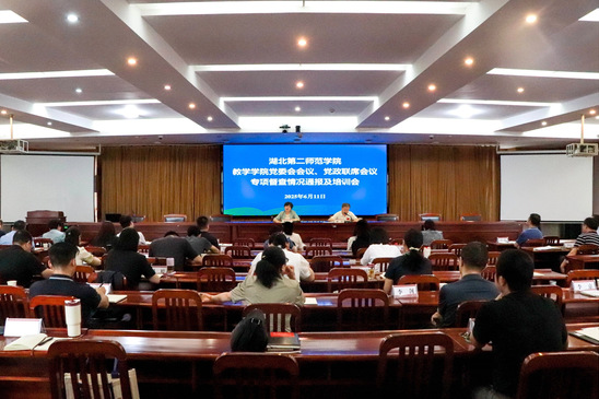 本网讯(通讯员 柯常春)6月11日下午,教学学院党委会会议、党政联席会议专项督查情况通报及培训会在行政楼五号会议室召开。校党委书记杨鲜兰出席,党委副书记胡兴主持会议。