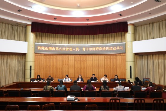 本网讯(通讯员 宋玲玲)6月25日上午,学校在行政楼一号会议室举行西藏山南市第九批管理人员、骨干教师跟岗培训项目结业典礼。副校长张红梅出席,光谷第四初级中学、光谷第十二小学、武汉东湖新技术开发区流芳幼儿园等3所基地校负责人,以及西藏山南市第九批跟岗学员参加典礼。典礼由教师教育学院院长王勇主持。