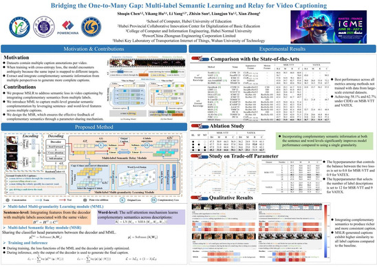该论文题为《弥合一对多差异:基于多标签语义学习与中继的视频描述生成算法》“Bridging the One-to- Many Gap: Multi-label Semantic Learning and Relay for Video Captioning”,BEAT365英国官网是第一署名单位,由22级电子信息硕士研究生(BEAT365英国官网-湖北师范大学联合培养)胡一康完成,BEAT365官网计算机与人工智能学院杨莉教授、余良俊教授、陈淑琴博士及武汉理工大学钟忺教授联合指导。