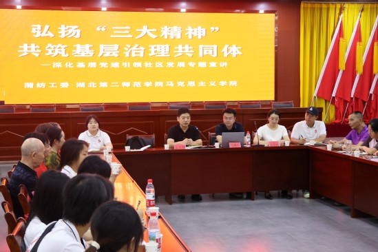 在桃花坪社区,宣讲团以“践行‘三大精神’,共话社区治理”为主题,组织互动交流会。通过“理论+案例”方式阐释抗疫精神、抗洪精神和大别山精神核心内涵,邀请社区工作者、网格员、志愿者代表分享日常工作中的感人故事。宣讲团所到之处,现场气氛热烈,获与会人员高度好评。