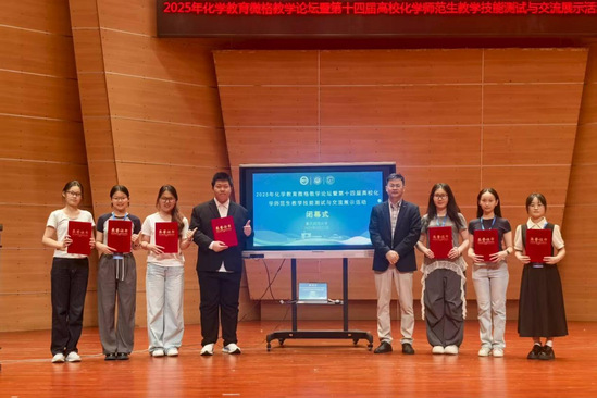 学校高度重视该赛事,将其作为提升学生教学技能、展示学院师范教育成果的重要契机。化学与生命科学学院多次召开专项会议,划拨专项经费,调集资源助力选手备赛。通过围绕教学设计、课堂表达、互动启发等关键环节开展多轮次模拟演练,参赛选手有效提升了教学组织与课堂实践能力,并在比赛中凭借扎实的知识基础和灵活的课堂调控能力稳定发挥,最终斩获佳绩。“通过这次比赛,我对化学教学有了更直观、更深刻的认识,未来我会继续打磨教学技能,向着成为一名优秀化学教师的目标不断迈进。”一等奖获得者董力嘉表示。