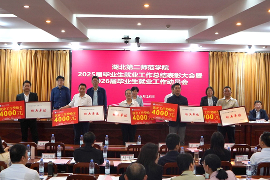 会上,学校发布2025级新生招录数据与2025届毕业生就业数据,并对前期招生就业工作开展情况进行总结。招生就业处处长刘儒国宣读《2025届毕业生就业工作先进集体及个人专项表彰决定》,校领导为就业工作先进集体与先进个人颁奖。计算机与人工智能学院党委书记陈宇、外国语学院教师王晓刚分别作为先进集体与先进个人代表发言。