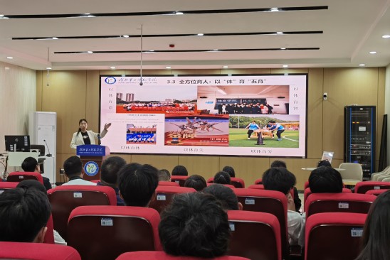 主题报告环节,体育学院王丹副教授从“筑专业根基、挖课程思政、夯实践育人、行改革理念、优情怀培育、宽赋能平台”六个维度,系统阐述体育学院近年来在教育家精神融入教师教育方面开展的工作及取得的成果。体育学院党委书记李小兵从教育家精神铸魂师范专业建设角度深入剖析,提出教育家精神是体育师范专业建设的灵魂,需进一步将其全方位融入人才培养目标、课程体系构建、师资队伍建设及学院文化建设等各环节。