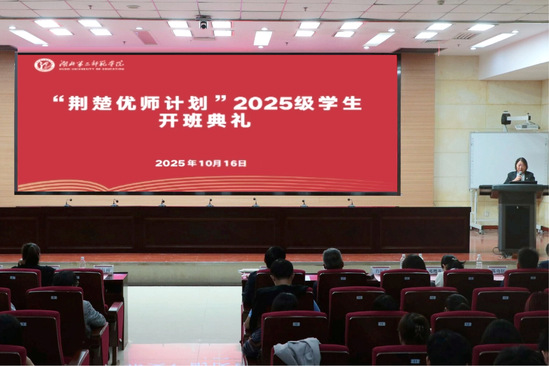 本网讯(通讯员 陈曦)10月16日下午,学校在图书馆一号学术报告厅举行2025级“荆楚优师计划”学生开班典礼。副校长张红梅出席活动。