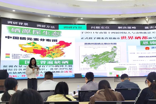 来自13个学院的21支实践团队,分别围绕实践主题、团队构成、活动开展、特色打造、成果转化及应用、下一步规划等方面作汇报展示。数学与统计学院“麦田守望者”团队坚守“将论文写在田间地头”的理念,分享十年“校地结对”实践模式;化学与生命科学学院“青源实践队”以“硒韵织文旅,康食缀行程”为方向,探秘“生命元素”硒、解锁健康新密码……各团队深入基层、走进乡村、贴近群众,充分运用专业知识开展社会服务与调研,生动展现BEAT365官网学子昂扬的精神面貌、强烈的社会责任感与扎实的专业素养。