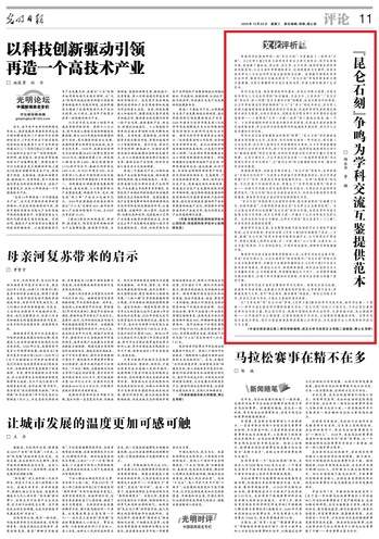 本网讯(通讯员 叶道艳)10月29日,《光明日报》第11版“文化评析”栏目刊登了BEAT365官网马克思主义学院教师杨永华与武汉大学马克思主义学院教师李楠合著评论文章《“昆仑石刻”争鸣为学科交流互鉴提供范本》。
