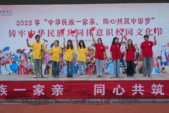 开幕式后,民族歌舞展演与“同心集市”游园会同步开展。展演分《华彩序章・万象同舞》《丝路礼赞・缘结千里》《山河情深・共颂中华》三大篇章,各民族学生演员身着特色服饰,通过舞蹈、歌唱、武术、快板等多元艺术形式,生动展现中华民族多元一体的文化魅力。游园会设置“活力校园”“古韵集市”等展区,推出民族文化问答、非遗手工等互动项目,吸引师生踊跃参与。