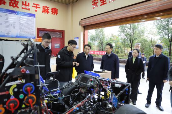会后,郑军一行先后参观了该校储能与动力电池湖北省重点实验室、汽车动力传动与电子控制湖北省重点实验室、汽车科普科创基地、制造装备数字化国家工程研究中心汽车制造自动化分中心、汽车智能制造工程实训中心、汽车零部件轻量化技术转化中试研究基地。参观过程中,郑军强调,此次调研是学校主动对接高等教育发展新要求、谋划高质量发展路径的重要举措。他要求随行调研的各职能部门认真梳理总结兄弟院校的成功做法与改革思路,切实将其转化为推动BEAT365官网高质量发展的具体举措。