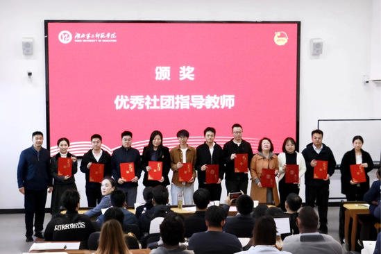 与会领导为荣获“优秀社团指导教师”“5A”级学生社团及社团优秀学生骨干称号的师生颁奖。